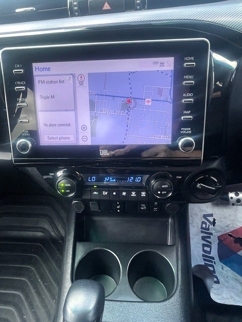 The GR-Sport is the most powerful Hilux on the market with 165kw of power and 500nm of torque. This top of the range spec has bluetooth, brake assist, front vision camera and leather seats. This 2023 Toyota Hilux GR Sport Auto 4×4 Double Cab has premium sound system, passenger airbag, power door mirrors, adaptive cruise control, front parking sensors and rear air conditioning. ABS brakes. Built collision avoidance system. Using the multi-function steering wheel, listen to your favourite music and answer calls without taking your hands off the wheel. In addition to all the foregoing this car has dual zone climate control air conditioning.